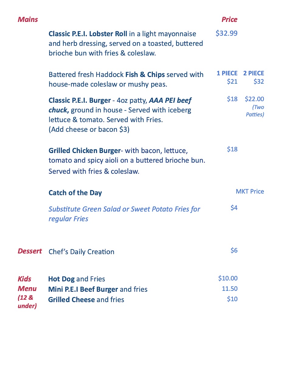 Welcome to Rick's Fish & Chips and Seafood House, a delightful gem nestled in Saint Peters Bay, PEI, where culinary tradition meets coastal charm. The menu showcases an irresistible array of seafood, featuring PEI mussels simmered in rich lobster bisque and the appetizing British fish and chips that customers can't stop raving about. Each dish is crafted with care, showcasing the freshness of the sea.
